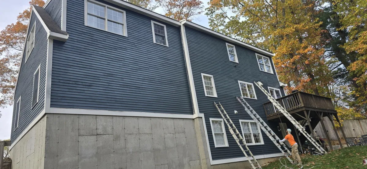In 2025, our team completed a full exterior repaint for a beautiful home in historic Newburyport, MA. The siding was faded and weather-worn, so we carefully sanded, primed, and applied premium weather-resistant paint to bring back its original charm.